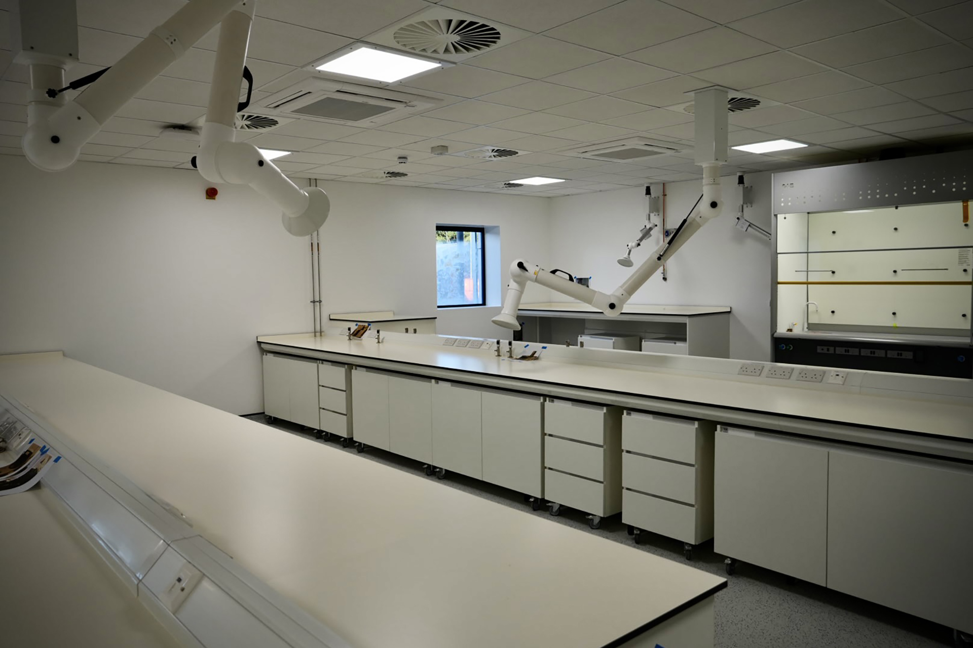 The design utilises a simple, efficient layout to enhance workflow and laboratory functionality. Sustainability features include a roof-mounted solar PV array, while a robust air handling and filtration system, supported by external ground-level plant, ensures compliance with stringent air quality standards required for specialist lab environments.
