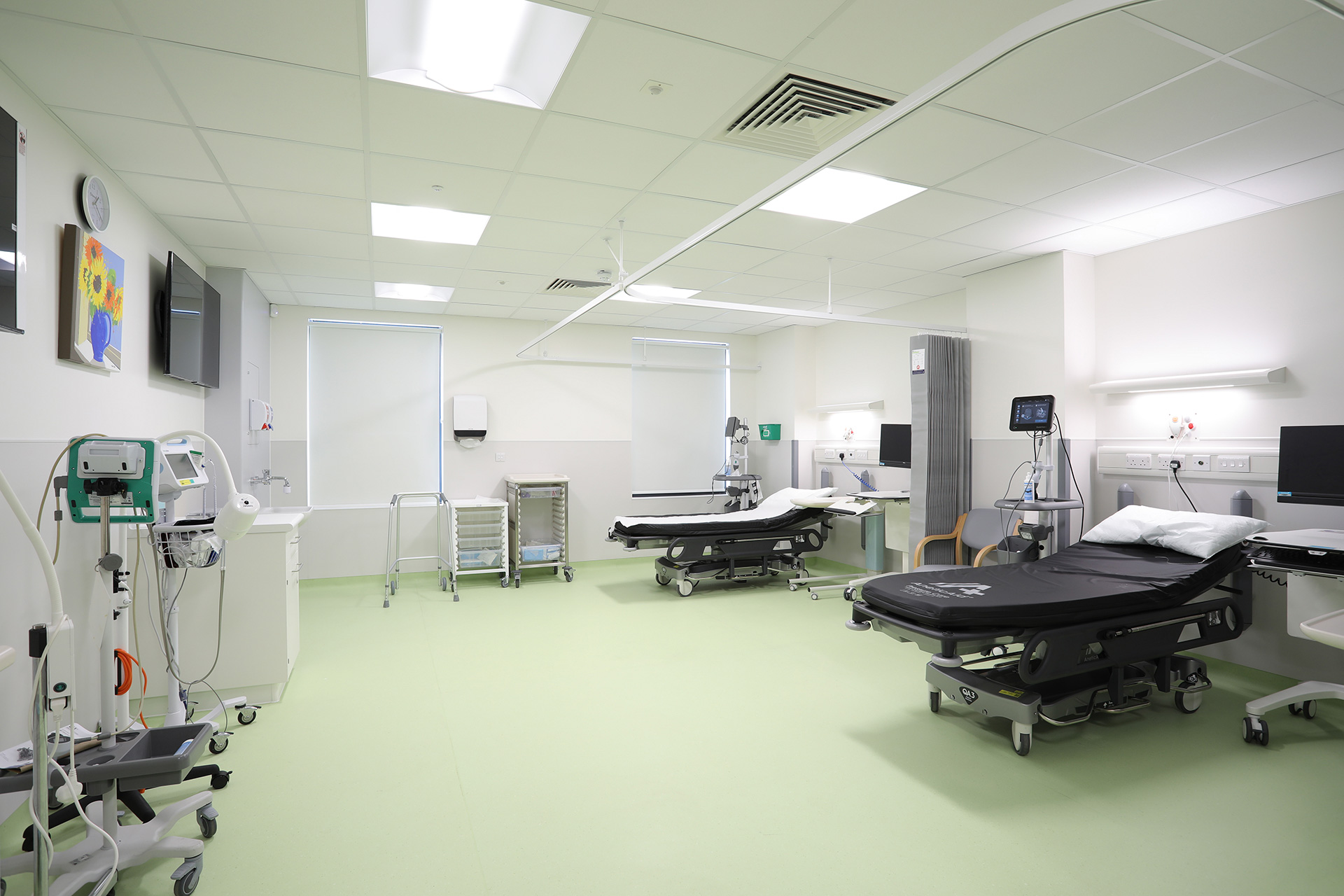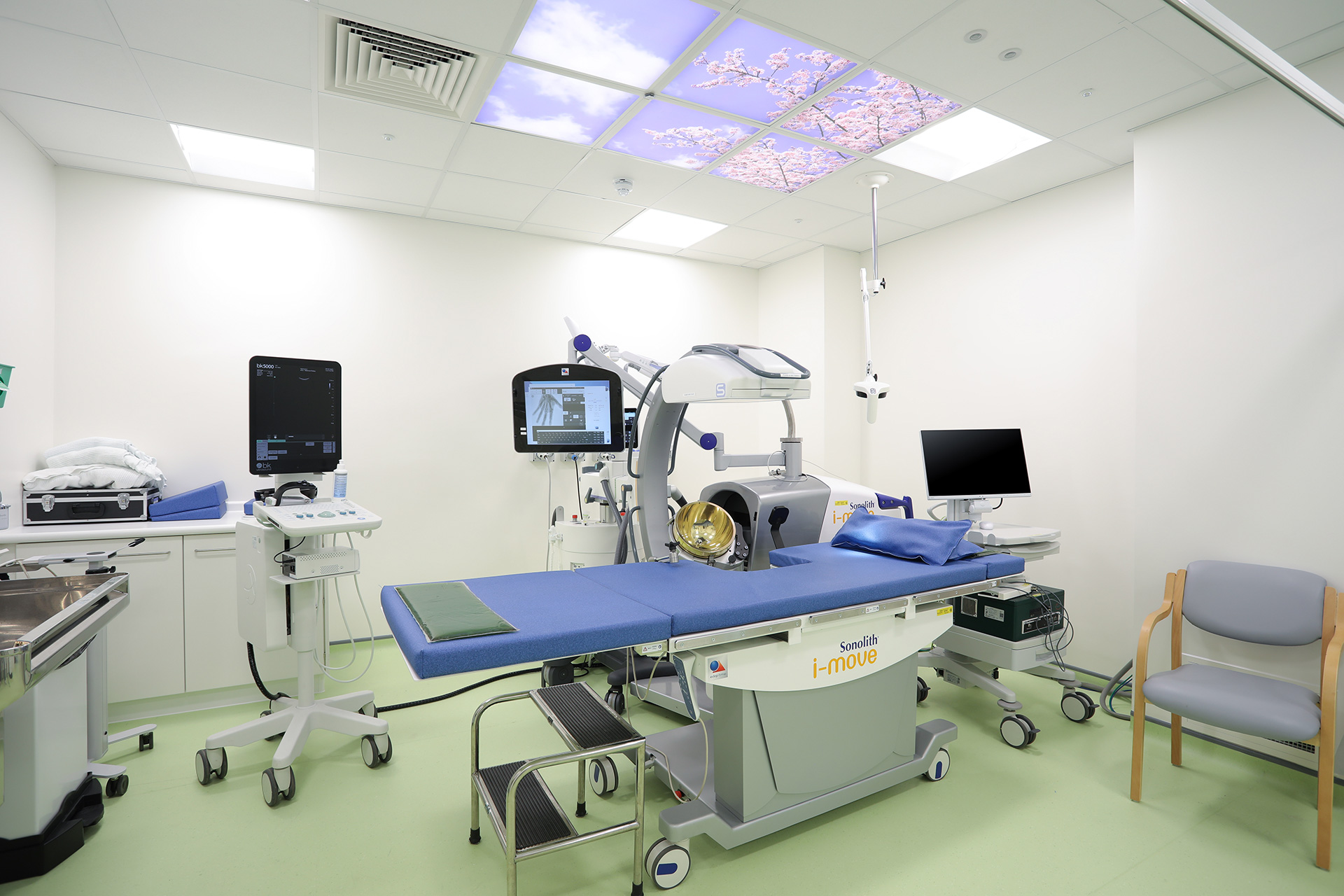 The 1,400m² development provides six consulting and examination rooms, an ultrasound suite, large treatment areas, and dedicated spaces for chemotherapy, lithotripsy and laboratory functions. Supporting facilities include offices, a staff rest area, changing rooms, reception and waiting areas, all designed to optimise flow and comfort.