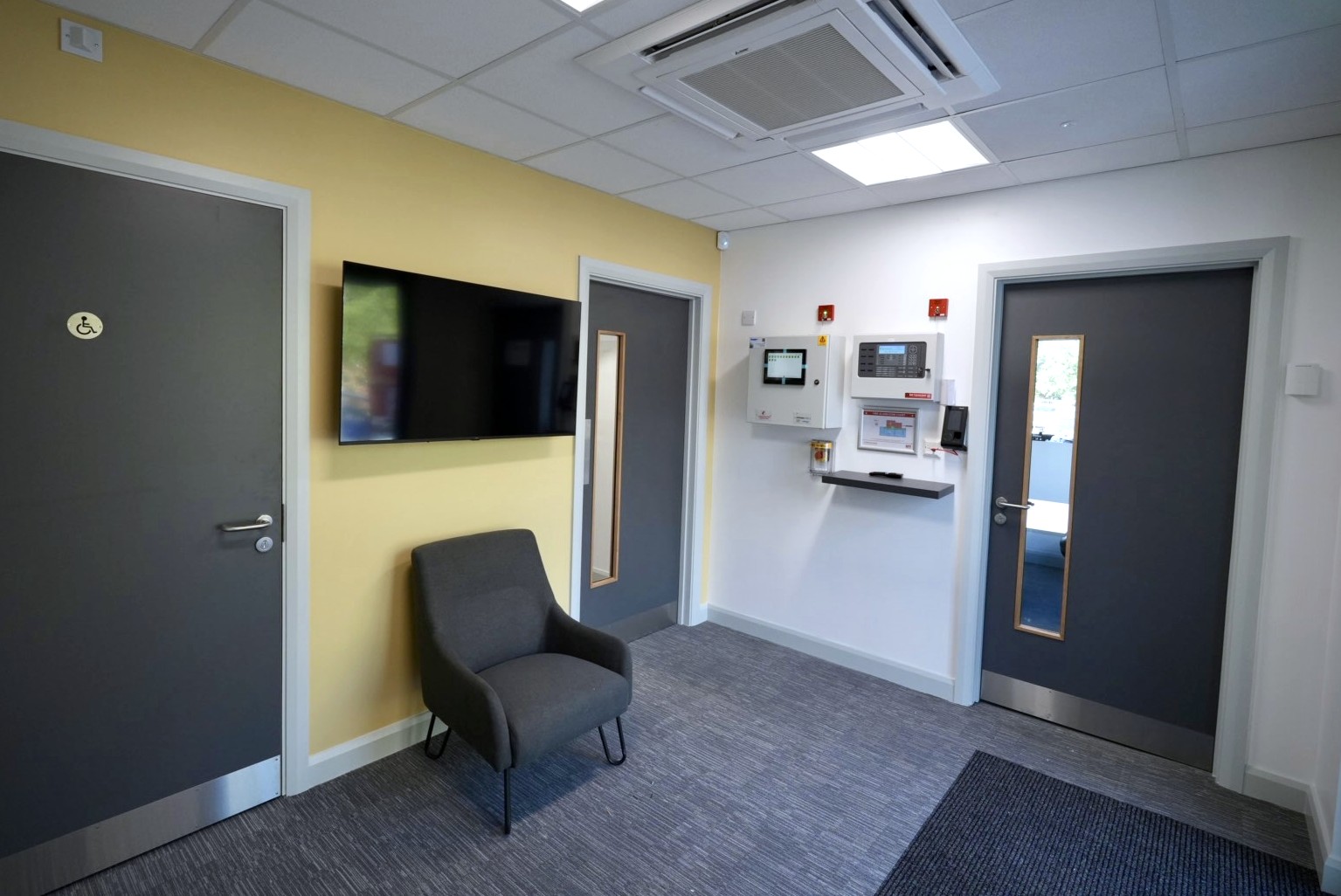 The design utilises a simple, efficient layout to enhance workflow and laboratory functionality. Sustainability features include a roof-mounted solar PV array, while a robust air handling and filtration system, supported by external ground-level plant, ensures compliance with stringent air quality standards required for specialist lab environments.