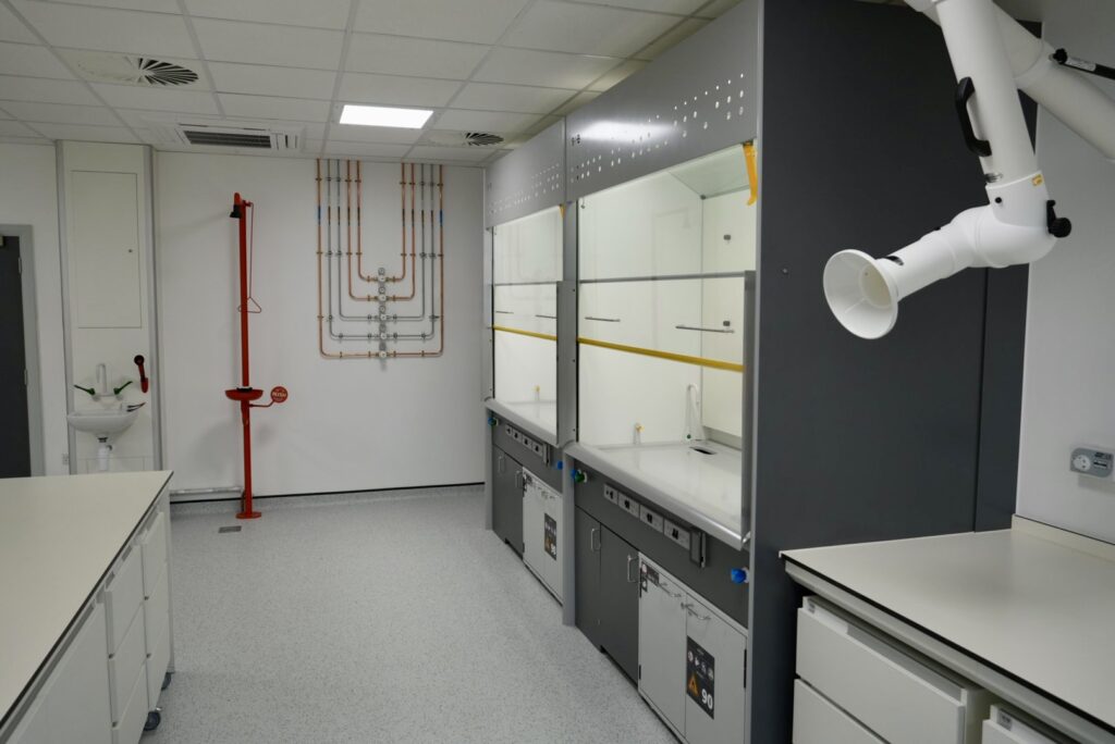Sustainability features include a roof-mounted solar PV array and a robust air handling and filtration system, supported by external ground-level plant, that ensures compliance with stringent air quality standards required for specialist laboratory environments.
