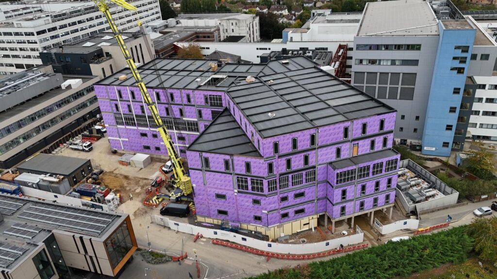The five-storey SEC for Oxford University Hospitals (OUH) NHS Foundation Trust is set to open its first phase in summer 2026 with seven new operating theatres - including two hybrid operating theatres - on the ground floor of the 7,541 sqm building. The modules began arriving in July to start the complex operation of craning them onto the constricted site in the heart of the hospital without disturbing the operation of other surrounding clinical facilities. By October, the complete structure was weatherproof enabling the MTX team to proceed with internal fit out.